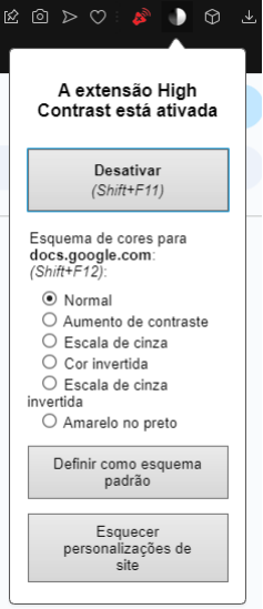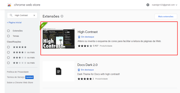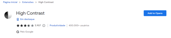 Como dito antes, o High Contrast é uma extensão de navegador, onde pode ser achado no