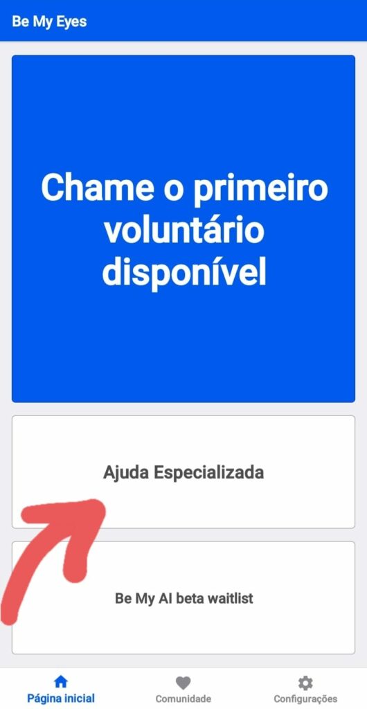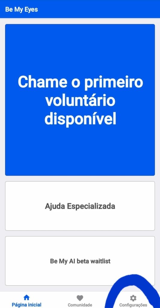 1. Selecione “Voluntário” ou “Usuário com Deficiência Visual” com base na sua intenção de uso.